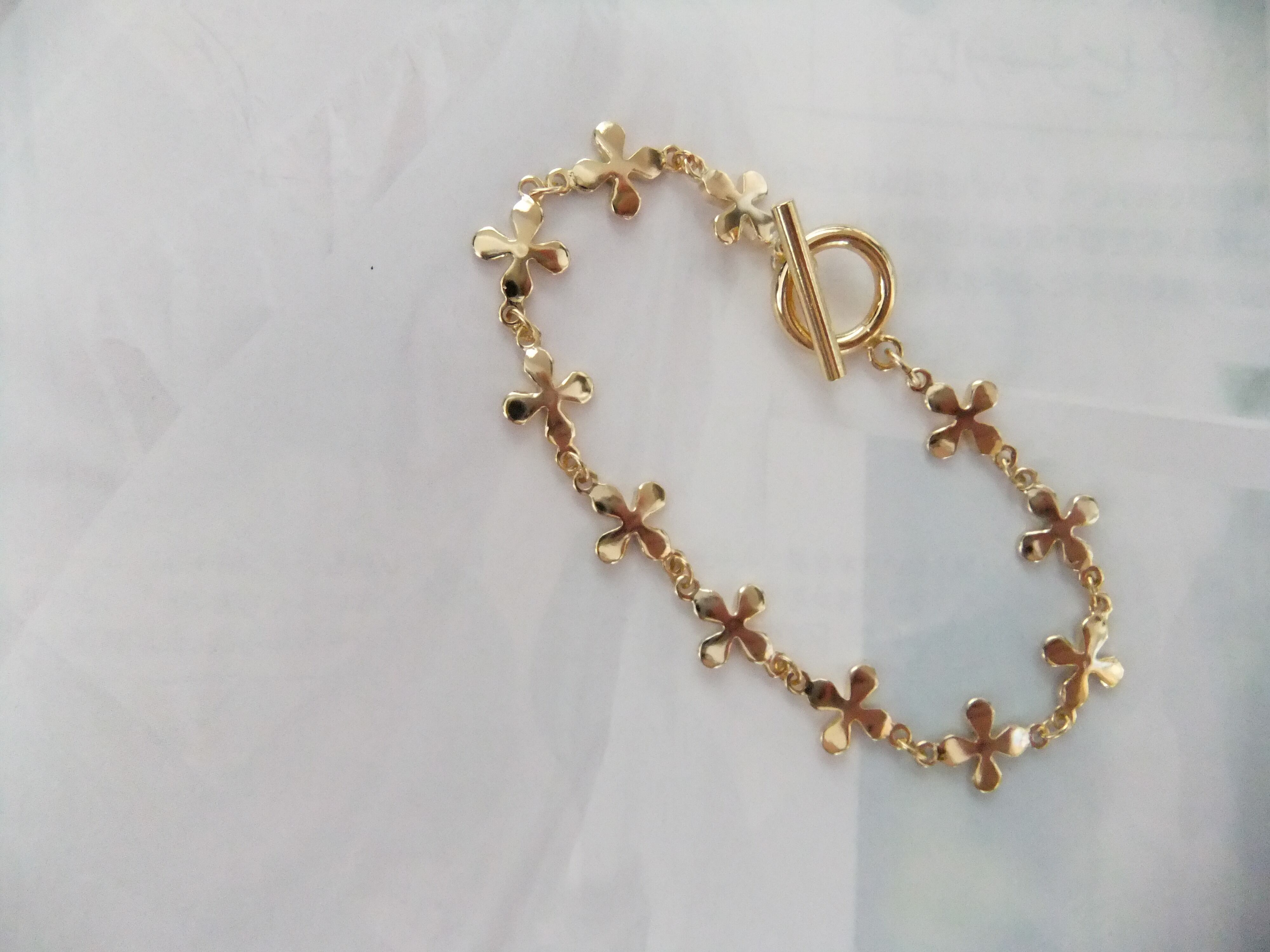 メタル4弁花8mm(ゴールド)、マンデル(ゴールド)、全長:16cm