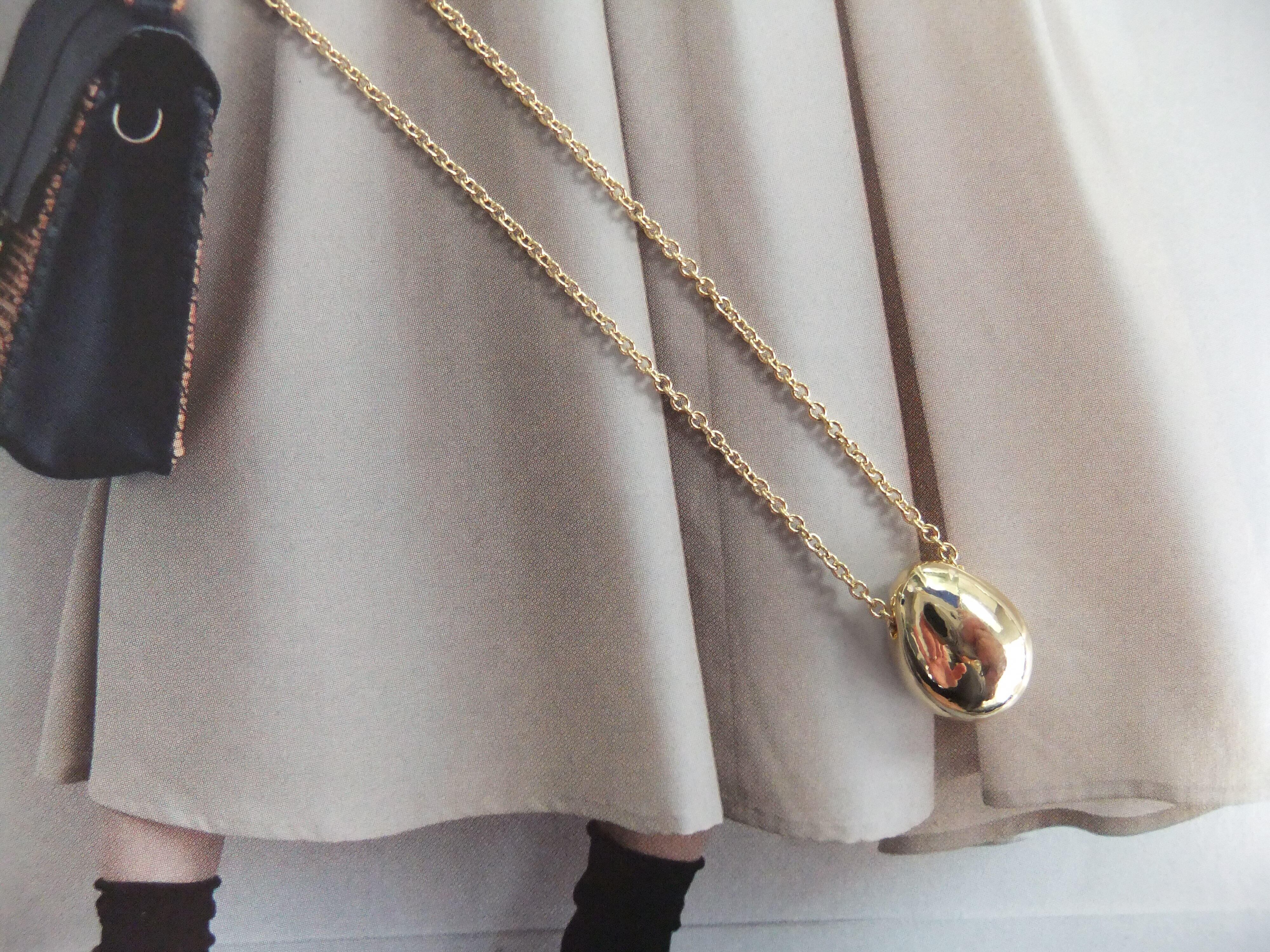 ゴールドの小さいぷっくりしたしずくチャームをつけたネックレスです。鎖骨下辺りの長さです。使用材料: