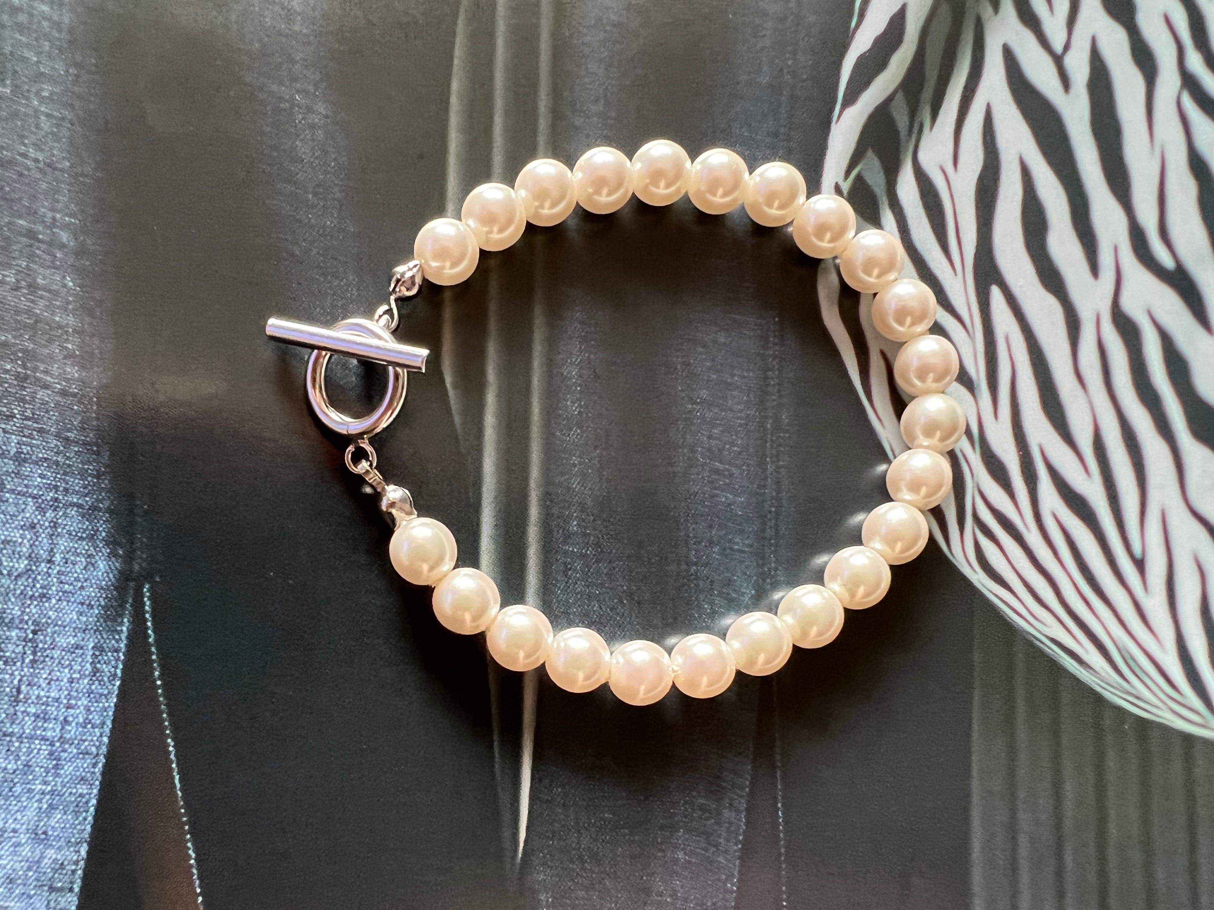 パールを繋いだシンプルなブレスです。マンテルでとめます。